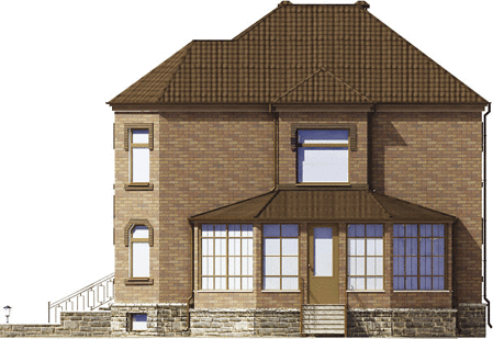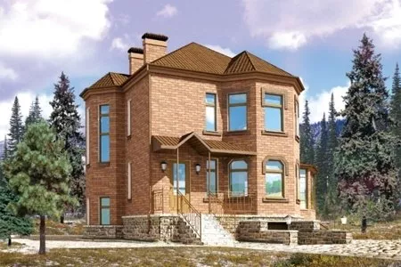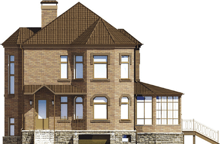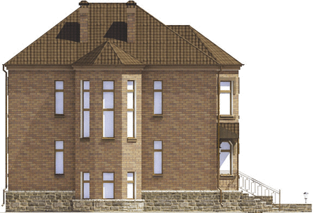 Если вы находитесь в поиске шикарного, но, в то же время, доступного двухэтажного дома для своей семьи, настоятельно рекомендуем обратить внимание на данный вариант. Здесь едва улавливается влияние готической архитектуры. В мощном цокольном этаже располагается гараж, кладовая, котельная, сауна и комната отдыха.