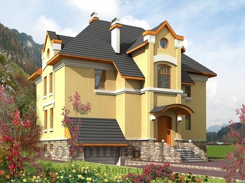 Респектабельный загородный дом впечатляет своим солидно оформленным фасадом и двумя входами, которые украшают мощные порталы с изысканными фронтонами...