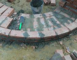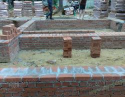 18. После засыпки песка и утрамбовки строители кирпичом подняли стены цоколя на нужную высоту в соответствии с проектом.