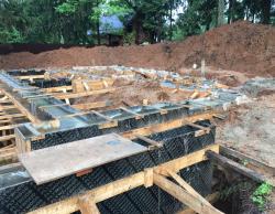 Фотографии процесса строительства дома, заливки фундамента и возведения цоколя