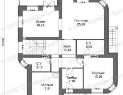Кроме того, дом был запланирован не традиционной формы с прямыми углами, а с закруглениями, а цокольный этаж занимал не всю площадь дома, а лишь его часть.