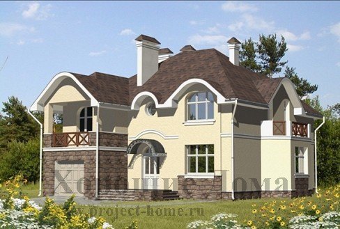 Проект оригинального загородного коттеджа площадью 193,6 кв. м. напоминает сказочный замок и отлично подходит для воплощения и в сельской местности и в городской застройке...