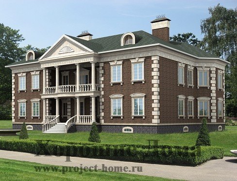 Классический загородный особняк для VIP - персон впечатляет своими симметричными строгими формами, двухярусной террасой с изящной балюстрадой, эффектным фронтоном и гармоничным, спокойным дизайном...