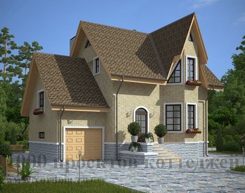 Современный загородный коттедж выделяется своим выразительным внешним видом, остроконечной кровлей, изысканной отделкой фасада, чётко обозначенным главным входом, организованным с высокого круглого...