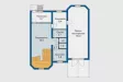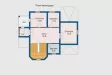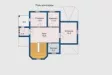 Рекреационный блок предназначен для комфортного отдыха членов семьи и их гостей и располагается на территории цоколя. Он состоит из небольшого бассейна, сауны, душевой и раздевалки. Подземный гараж-мастерская, растянувшийся во всю длину дома, занимает площадь 38 кв. м. Прямо над ним на первом этаже находится гостиная комната с камином и территория столовой. Большая прихожая занимает центральное место на этаже и включает в себя удобную лестницу на второй этаж. В мансарде размещены две спальни и кабинет.