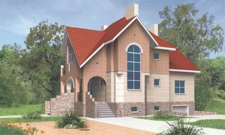 Большой и оригинальный дом из кирпича придется по вкусу совершенно разным семьям, имеющим различные предпочтения и требования. Универсальность проекту обеспечивает довольно удачное смешение архитектурных стилей при отделке фасадов особняка. Кроме того, наличие цоколя и мансарды позволяет разместить в коттедже максимальное количество просторных и функциональных помещений.