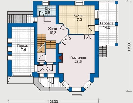 Высота потолков первого этажа (мм): 3000