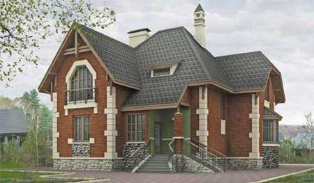Проект дома из кирпича в 2 этажа на 183 кв.м в готическом стиле