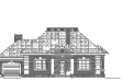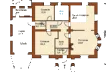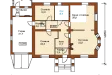 По левой стороне коттеджа расположены две спальные комнаты 12,8 кв. м. и 22,3 кв. м. Справа находятся кухня-столовая и гостиная с камином и очаровательным эркером.