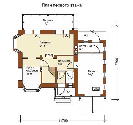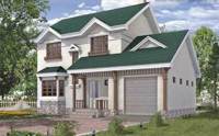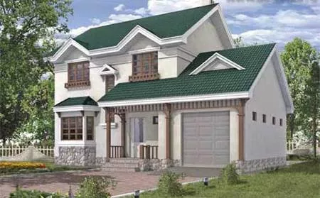 Двухэтажный кирпичный дом для постройки в городе или в сельской местности. Такой коттедж будет прекрасным жилищем для небольшой семьи, ждущей от своего дома городского комфорта при небольших габаритах. Семья численностью до 5 человек может проживать в нем в течение круглого года. В проекте предусмотрен одноместный гараж-пристройка с собственной двускатной крышей и территорией 20,3 кв. м. Из него можно пройти насквозь через небольшую котельную на территорию участка за домом, а также попасть и в жилую часть дома.