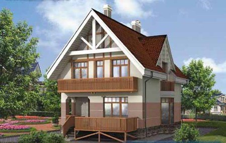 Проект кирпичного особняка для воплощения на земельных участках с ровным рельефом. Это довольно классический коттедж с двумя этажами, отвечающий потребностям основной части горожан, предпочитающих проживание в городе. Планировка внутренних помещений устроена таким образом, чтобы семья составом до пяти человек могла комфортно разместиться в нем для проживания в течение круглого года. В доме нет цоколя и подвалов, что заметно облегчает постройку на сложных грунтах, а также экономит средства. Важно, что коттедж достаточно хорошо защищен в любое время года даже от самых лютых морозов за счет высокой теплоизоляции пористым кирпичом.