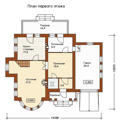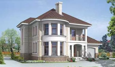 Проект симпатичного загородного особняка с колоннами и фасадами в стиле классических усадеб 19 века украсит совершенно любую коттеджную застройку, однако лучше всего будет смотреться на лоне природы в тени деревьев. Главной изюминкой в дизайне фасада можно считать циркульный эркер в высоту обоих этажей дома. Благодаря отсутствию цоколя и подвала воплощение проекта возможно и на земельных участках с высоким уровнем грунтовых вод. По внутренней планировке дом особенно удобен и будет комфортным жилищем в течение круглого года.