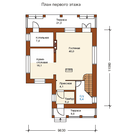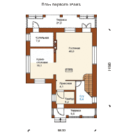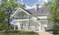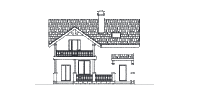 Простой дизайн несложного экстерьера данного коттеджа создает впечатление непринужденной легкости всего особняка, что придется по нраву небольшим семьям составом до 4 человек, подыскивающих дом для постоянного проживания. Имея общую площадь всего 166 кв. м., планировка внутренних помещений устроена максимально практично. Войдя в дом через длинную крытую террасу и пройдя небольшой тамбур и почти такую же по размеру прихожую, можно попасть в гостиную комнату, довольно большую для такого скромного по размерам особняка. Ее площадь занимает 40 кв. м. Из гостиной, как и из расположенной рядом котельной, можно выйти на придомовую террасу, растянувшуюся вдоль всей задней стены коттеджа.