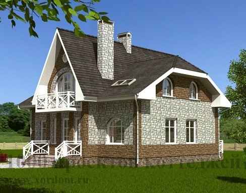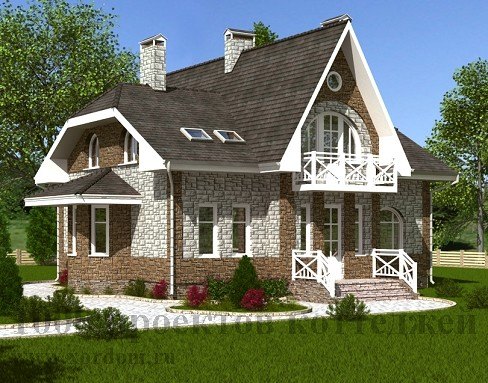 Загородный коттедж современного дизайна, с эффектным балконом над главным входом и широким крыльцом, прямыми линиями фасада с лаконичной отделкой, явно выраженным цельным объёмом. Дом предназначен для летнего отдыха небольшой семьи в составе 2-4 человек.