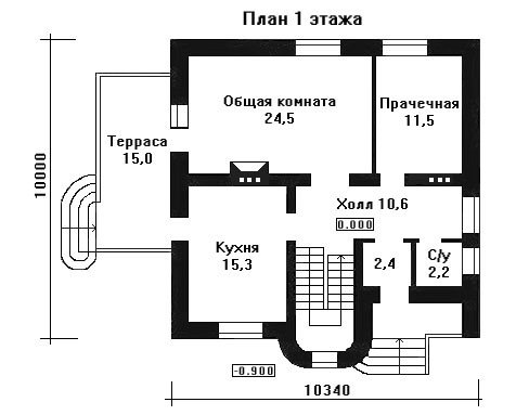 Цокольный этаж дома не имеет отдельного входа, попасть в него можно только из помещения холла на первом этаже, там может размещаться котельная, очистительная установка для воды, кладовая.