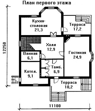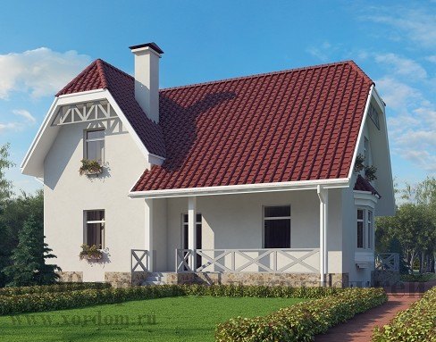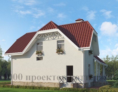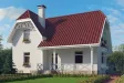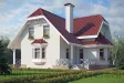 Торжественный и праздничный особняк с выразительной крышей, контрастирующей с фасадом, эффектными эркерами, высоким крыльцом, рассчитан для постоянного комфортного проживания небольшой семьи из 2-5 человек.