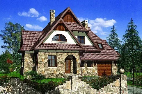 Необыкновенно красивый и самобытный загородный коттедж привлекает, прежде всего, своими оригинальными формами, интересными авторскими решениями, выразительной многоскатной кровлей и оформлением мансарды, великолепной отделкой фасада из натурального камня, благодаря которой дом очень естественно и органично вписывается окружающий природный ландшафт. Дом предназначен для проживания небольшой семьи из 3-5 человек.