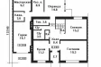 На первом этаже дома находятся помещения кухни и гостиной, разделённые пространством небольшого холла, гостевая спальня, санузел и котельная, с тыльной стороны дома оборудован выход на остеклённую веранду.