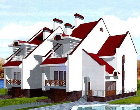 Особняк из кирпича для круглогодичного проживания двух семей, выполнен в соответствии со всеми современными тенденциями в архитектуре и прекрасно подходит для воплощения среди даже довольно плотной городской коттеджной застройки. Дизайн экстерьера особняка довольно сдержан, но выглядит достаточно запоминающимся. Каждые апартаменты рассчитаны на комфортную жизнь семьи составом 4-5 человек. Планировки абсолютно идентичны и ставят в совершенно равные условия обе семьи.