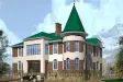 Кирпичный дом-замок в 3 этажа на 576 кв.м с круглой башней