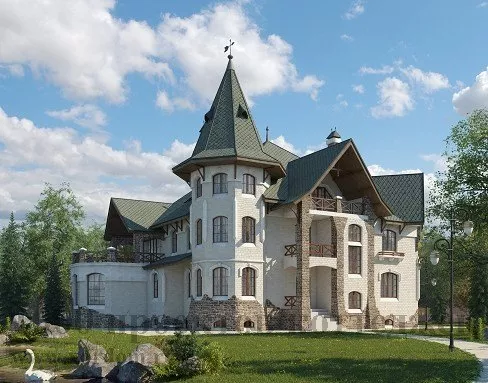 Проект кирпичного дома-замка в 3 этажа более 800 кв.м площадью