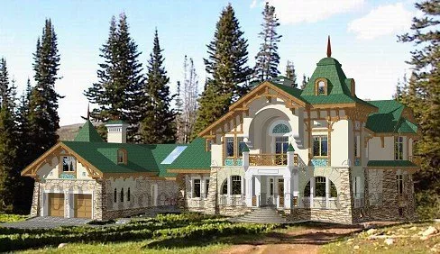 Проект коттеджа, напоминающего сказочный домик, без сомнений понравится большинству семей, ищущих комфортабельный загородный коттедж с двумя этажами и ярким необычным дизайном. В этом замечательном особняке переплелись несколько популярных на сегодняшний день архитектурных стилей, включая классический стиль с элементами замкового и даже местами готического стилей. Планировочное решение не менее оригинально и охватывает три уровня коттеджа.