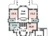 Идеально подойдёт для проживания большой семьи, благодаря наличию семи просторных спальных комнат. В этом шикарном коттедже целых три полноценных этажа – цокольный, первый и второй.
