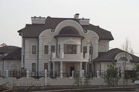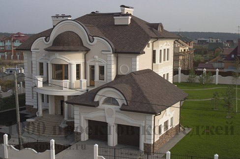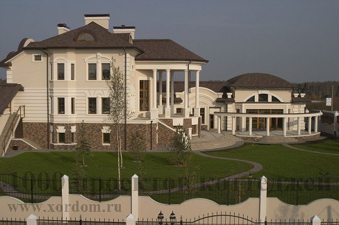По истине величественный коттедж свыше 700 кв.м., построенный из кирпича. Как можно видеть на фото, подобный коттедж был построен нами в Москве.