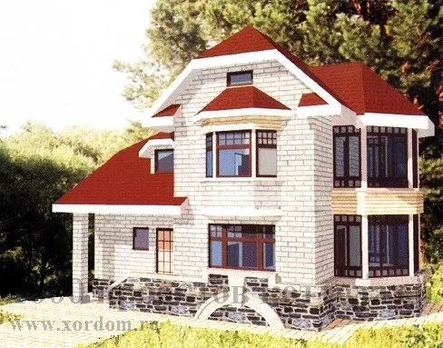 Респектабельный коттедж из пяти комнат имеет лаконичную и простую планировочную схему, а также довольно чёткую и простую конструкцию, что значительно снижает затраты на его возведение и ускоряет процесс постройки.