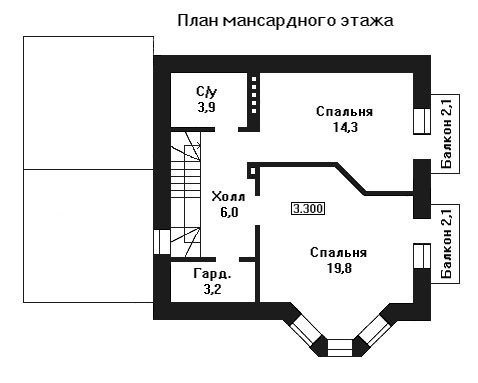 Мансардный этаж полностью занят приватной зоной для сна и отдыха, там разместились две спальни с персональными балконами, ванная и гардероб.