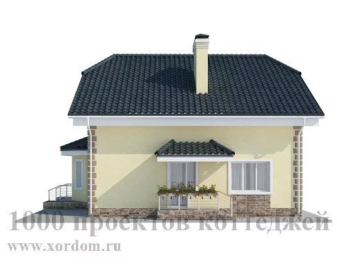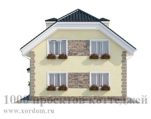 Для тех, кто ценит добротность, надёжность и функциональность, а также уют и комфорт, этот солидного вида двухэтажный коттедж эконом-класса станет оптимальным выбором. Дом очень гармоничный и довольно компактный, отличается симметричным стильным дизайном фасада с отделкой из натурального камня, чудесным эркером-тамбуром на входе в здание, крутой двухскатной кровлей мансарды, большими светлыми окнами.