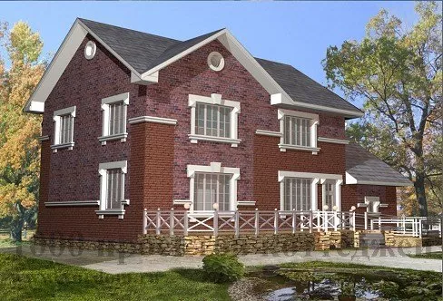 Проект двухэтажного дома из кирпича на 170 кв. м с фигурными откосами