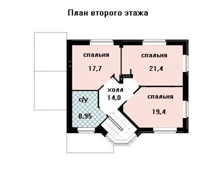 Второй этаж поделен на три спальни и ванную комнату, которые сгруппированы вокруг небольшого холла.