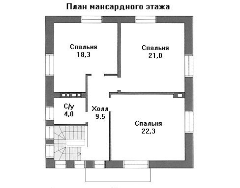 На мансардном этаже спроектированы три просторные спальни и ванная комната.