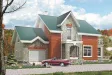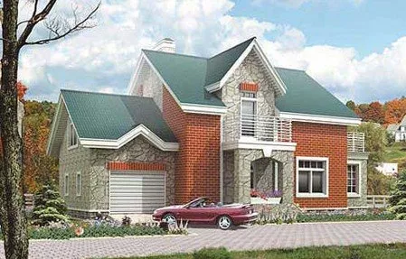 Проект небольшого особняка из газоблоков интересен своим привлекательным внешним дизайном и особенно удачной планировкой. Это хорошо продуманный в плане внутренней планировки загородный особняк для проживания одной небольшой семьи, оформленный в европейском стиле. Здание прекрасно впишется не только в коттеджную застройку города, но и в сельский пейзаж. Удобства этому проекту добавляет пристроенный к дому слева гараж на один автомобиль общей площадью 23 кв. м. Просторный холл на первом этаже ведет направо в помещение гостиной размером 27,1 кв. м., оборудованную отдельным выходом на просторную веранду. К гостиной примыкает кухня-столовая, расположенная на территории в 11,6 кв. м. Котельная и кладовая находятся за стенкой от кухни и граничат с небольшим санузлом.