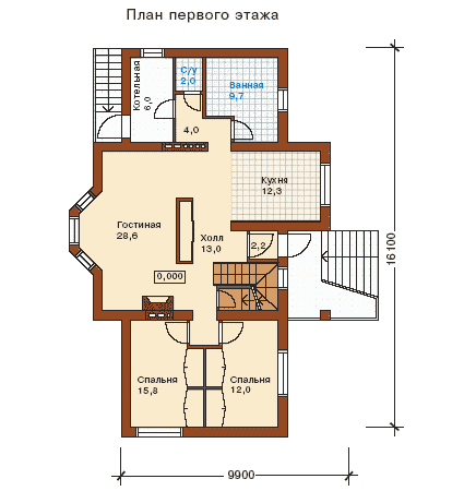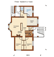 В доме запроектировано четыре спальные комнаты, при этом две из них удобно находятся на первом этаже и отлично подойдут для размещения пожилых членов семьи. Еще две спальни расположены в помещении мансарды и объединены общим просторным холлом. Просторная гостиная комната размером 28,6 кв. м. находится на первом этаже и частично совмещена с территорией холла и кухни. Котельная выведена так же на первый этаж и имеет два входа – и с улицы и из жилой зоны дома.