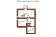 Интересным акцентом, украшающим весь первый этаж, является большое витражное окно, придающее общему интерьеру двусветной гостиной по особому торжественный вид. Для еще более комфортабельной жизни в гостиной предусмотрительно запроектирован домашний камин. Тут же расположен рабочий кабинет, который вполне можно использовать как комнату для размещения гостей. Выход на приусадебный участок осуществляется из территории столовой через террасу. Второй этаж состоит трех комнат под спальни и общего санитарного узла.