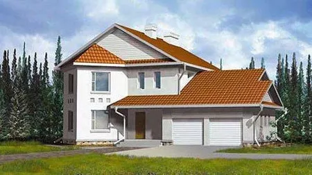 Двухэтажный коттедж из газоблоков площадью 230,6 кв. м. предназначен для постоянного загородного проживания и станет украшением любого пейзажа. В проекте предусмотрен гараж-пристройка, рассчитанный на размещение двух автомобилей и общей площадью 33,1 кв. м. Архитектура фасадов дома выглядит скромно и элегантно, подчеркивая тонкий вкус хозяев. Изюминкой экстерьера можно назвать оригинальный треугольный эркер на два этажа, являющийся одной из стен гостиной на первом этаже и спальни на втором.