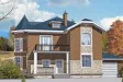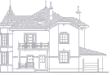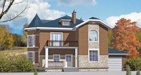 Этот проект выполнен по традиционным архитектурным мотивам «петербургского загородного дома». Двухэтажный особняк выделяется ажурными коваными перилами балкона и ограждения главного входа, двумя элегантными эркерами с высокими витражными окнами, утончённой отделкой фасада с применением натурального камня. В доме комфортно может проживать семья из 3-5 человек в течение всего года.
