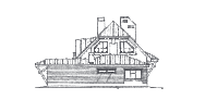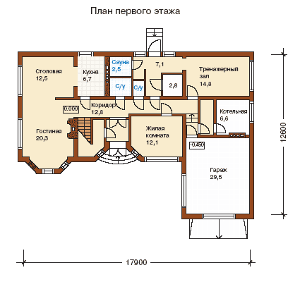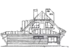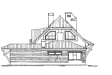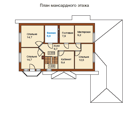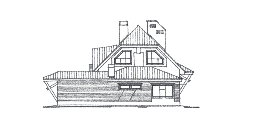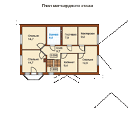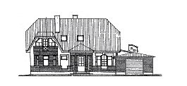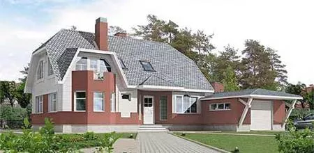 Любителям мощных лаконичных форм и крупных планов, ценящим прежде всего добротность, надёжность и функциональность жилища, предлагается этот проект двухэтажного загородного особняка, который можно использовать и как вариант небольшой семейной гостиницы: количество спален на мансардном этаже и интересное зонирование пространства первого этажа делают данный проект вполне пригодным для этих целей.