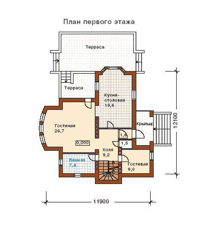 Проект дома 12х12 м из газобетона в 3 этажа