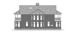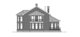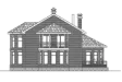 Этот оригинальный особняк выделяется среди прочих проектов обилием эркеров: их четыре - по одному с каждой стороны, что при имеющемся решении фасадов и планов делает возможным ориентировку дома по любой из четырёх сторон света.