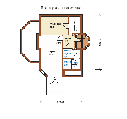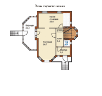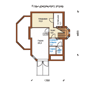 По планировке дом достаточно вместительный и имеет все необходимые жилые и нежилые помещения. В цоколе предусмотрен подземный гараж на один автомобиль, а так же помещение кладовой, котельной и небольшой банный комплекс из сауны и комнаты для отдыха.