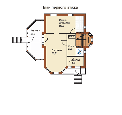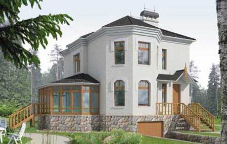 Проект респектабельного загородного особняка из газоблоков имеет общую площадь в 216,7 кв. м. и предназначен для комфортного проживания в течение всего года. Это дом для одной семьи, любящей комфорт городских условий, но стремящейся к единению с природой. В таком коттедже будет вполне удобно от 3 до 5 членам семьи, а так же их нескольким гостям. Проект интересен не только своей комфортной планировкой, призванной использовать каждый метр с пользой для жилой площади, но так же и внешним оформлением, что во многом обусловлено наличием двухэтажного эркера и просторной застекленной веранды.