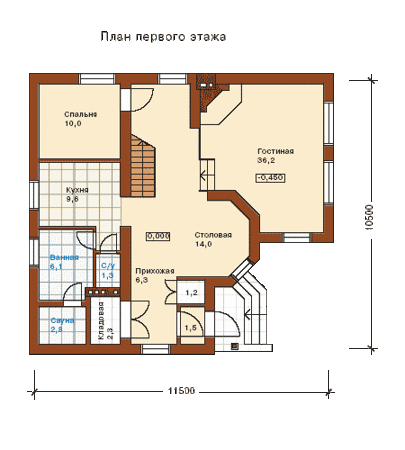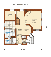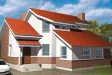 Небольшой, но достаточно удобный компактный особняк в двух уровнях, построенный из газосиликата подходит для круглогодичного пребывания в нем или же для сезонного отдыха немногочисленной семьи до пяти человек. Фасад дома отделан облицовочным кирпичом. Интересным решением внутренней планировки является размещение гостиной по уровню немного ниже, чем прочие помещения этажа. Это оригинальное расположение способствует не только практичной планировке, но и позволяет внести больше фантазии при организации дизайна интерьера. Главный вход в особняк - с красивым крылечком.