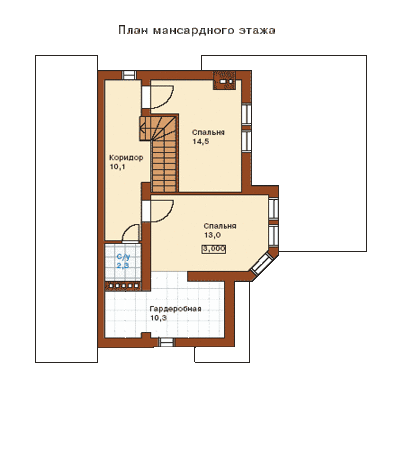 Мансардный этаж разделен между двумя спальнями и общим санитарным узлом. В одной из спален есть гардероб, который порадует хозяйку дома.
