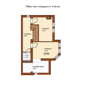 Территория вспомогательных помещений запроектировна достаточно компактно. Единая территория гостиной и столовой размещается на территории первого этажа. Этаж дополнен уютной спальней, которая по желанию владельцев коттеджа может быть использована в другом назначении, например, в качестве кабинета или гостевой.