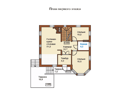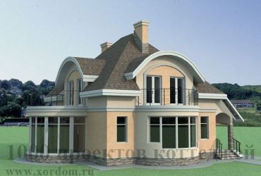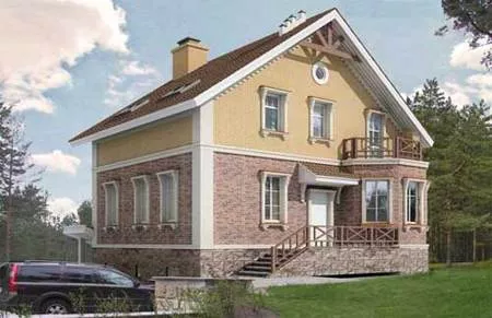 Данный коттедж из кирпича загородного типа имеет компактные габариты в плане (10х10), что позволяет размещать его на небольших участках. Также проектом предусмотрено, что участок под строительство коттеджа может иметь незначительный рельеф.