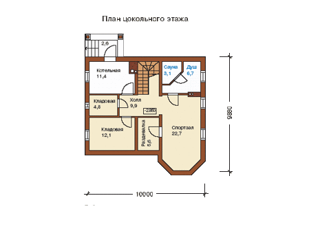 Цокольный этаж лишь наполовину заглублен в землю, из чего следует, что возможно строительство такого коттеджа на участках с достаточно высоким уровнем грунтовых вод. Перепады террас вокруг основного объёма дома подчеркнут выраженность рельефа на вашем участке, а продуманная планировка позволит достаточно комфортно проживать в течение круглого года довольно большой семье, состоящей из 6, а то и 8 человек. Несомненно, что для коттеджа с такими габаритами это является большим плюсом.