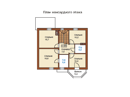 Проект кирпичного дом 10х10 м в 2 этажа с двускатной крышей